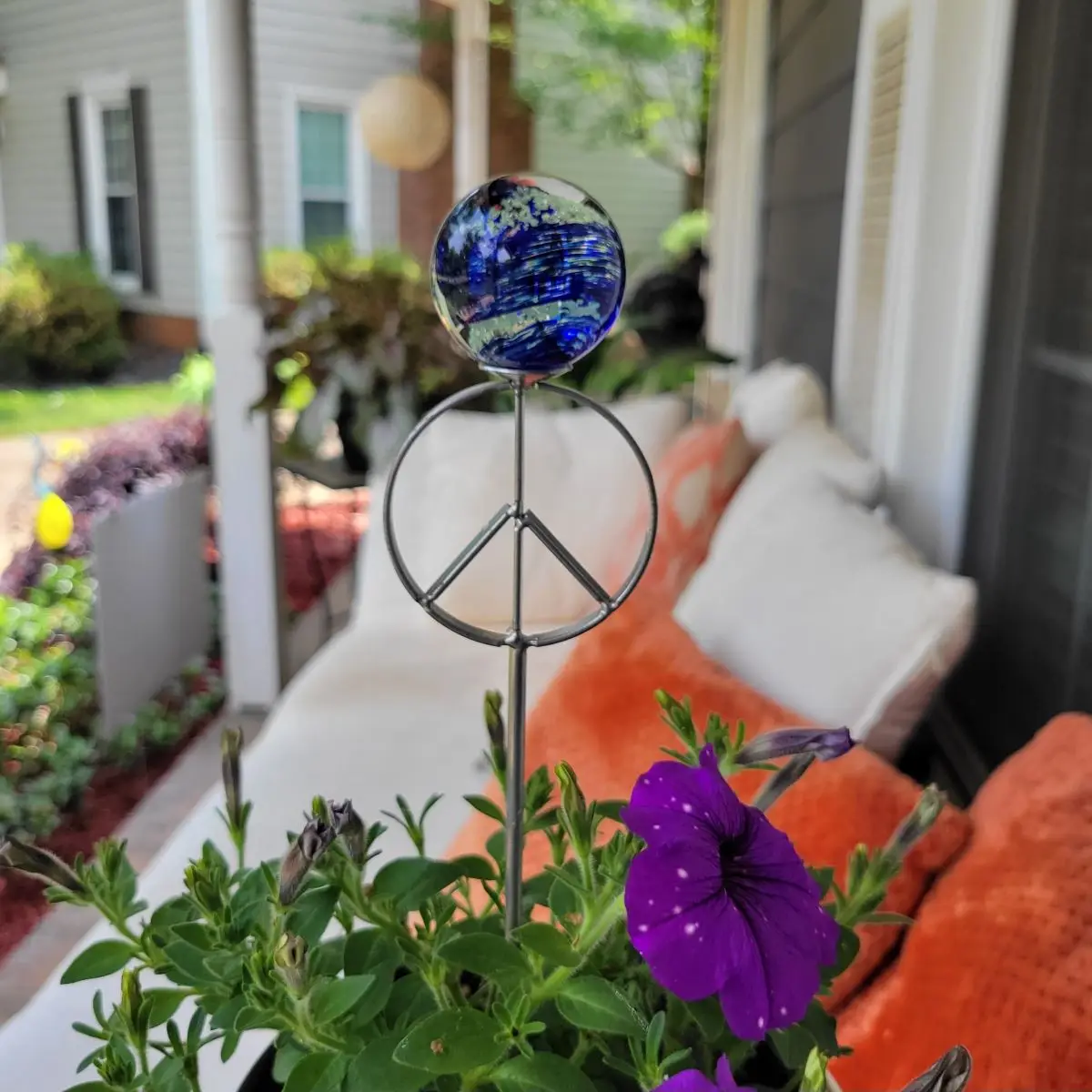 The pot stickers are great in a potted plant, container garden, fairy garden or hanging basket as garden art. They can also be used as a support for young starter plants and saplings. Luminescent crystals inside the 1.5″ glass marble absorb light energy during the day and release it at dusk in the form of a soft green glow.
